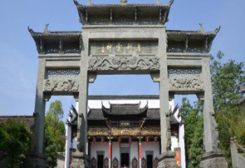 傳統中式園林村莊入口石雕牌坊