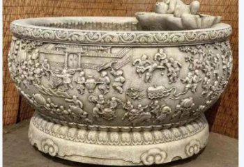 百子嬉戲圖?中式石雕魚缸景觀雕塑