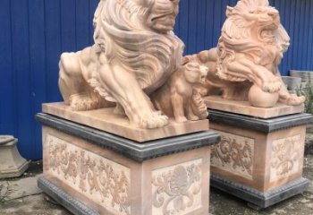 精美石雕獅子雕塑,裝點精致庭院
