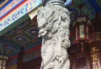 精美仿古園林,花崗巖石龍盤柱點綴