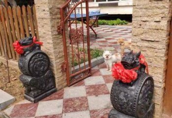 青石仿古門墩庭院抱石雕鼓