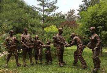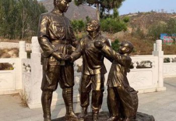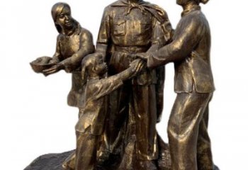 玻璃鋼仿銅八路軍慰問農民的情景小品