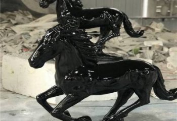 室內家用玻璃鋼黑色駿馬奔跑擺件