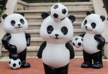可愛熊貓雕塑,擺放玻璃鋼足球,為庭院添彩