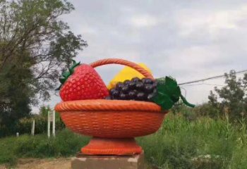 大型彩繪玻璃鋼水果籃雕塑