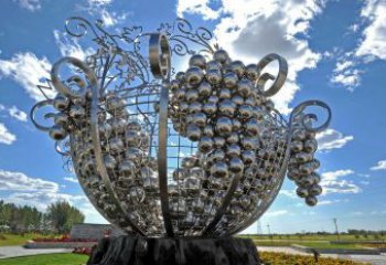 城市風格不銹鋼大型鏤空果盤葡萄雕塑