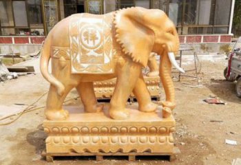 絢麗多彩的石雕大象雕塑,點(diǎn)綴晚霞紅,美化別墅景觀
