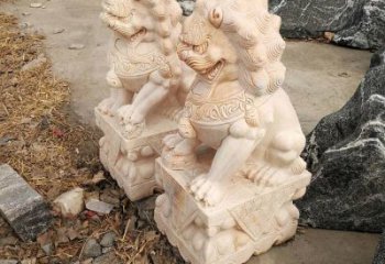 精美大理石雕刻石獅子,為酒店門口添彩晚霞紅