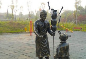 仿銅民俗玻璃鋼冰糖葫蘆小品是一款獨特的藝術品,可以擺放在家里或室外空間,給人一種古樸、古香古色的感覺。這款小品采用傳統的民俗人物造型,通過玻璃鋼、仿銅等材料制作而成,并以冰糖葫蘆做為裝飾,它的整體色調柔和,給人一種溫馨、安寧的感受,猶如置身于美好的鄉村環境。