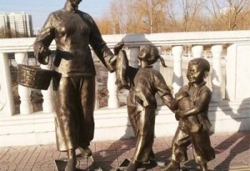 該民俗雕塑以銅雕為載體,傳承傳統雕塑工藝。創作者聚焦 “河口碼頭” 場景,刻畫三位勞動者搬運貨物的動態:有的背負糧袋爬坡、有的合力抬箱、有的借力起運,通過寫實造型與力量感姿態,還原舊時碼頭勞作風貌。從文化意義看,它是地域歷史的微縮呈現。碼頭曾是商貿、交通樞紐,勞動者群像見證往昔貨運興衰,承載當地百姓對勤勞、協作精神的推崇;銅雕材質賦予作品持久生命力,讓后代能觸摸先輩奮斗軌跡,延續對傳統行業、勞動價值的文化記憶,成為連接過去與當下的民俗文化紐帶,喚起人們對地域發展歷程與勞動精神的共情。